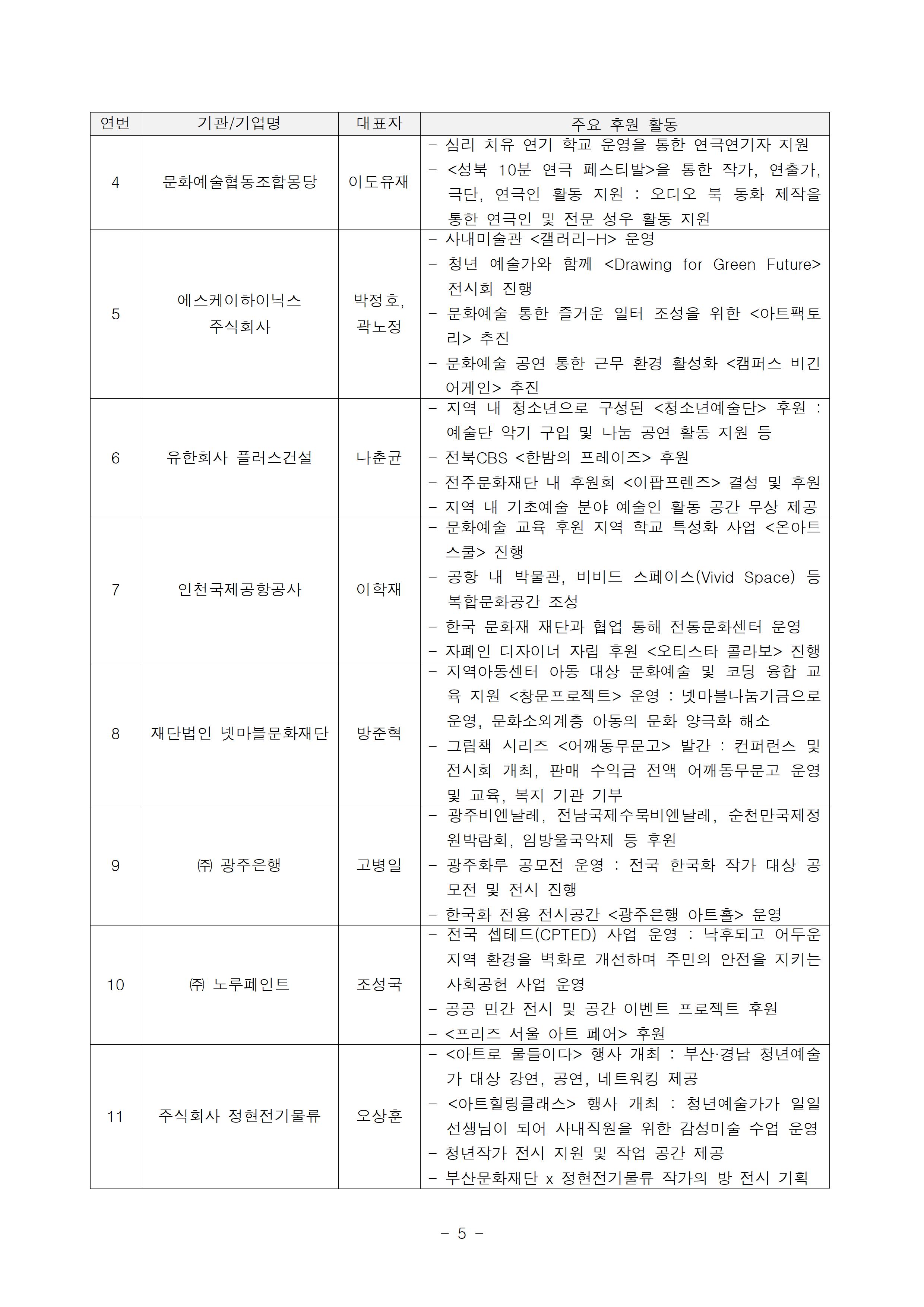 - 문화예술 분야에 기부, 문화예술 행사 개최로 기여해 온 기업/단체를 인증